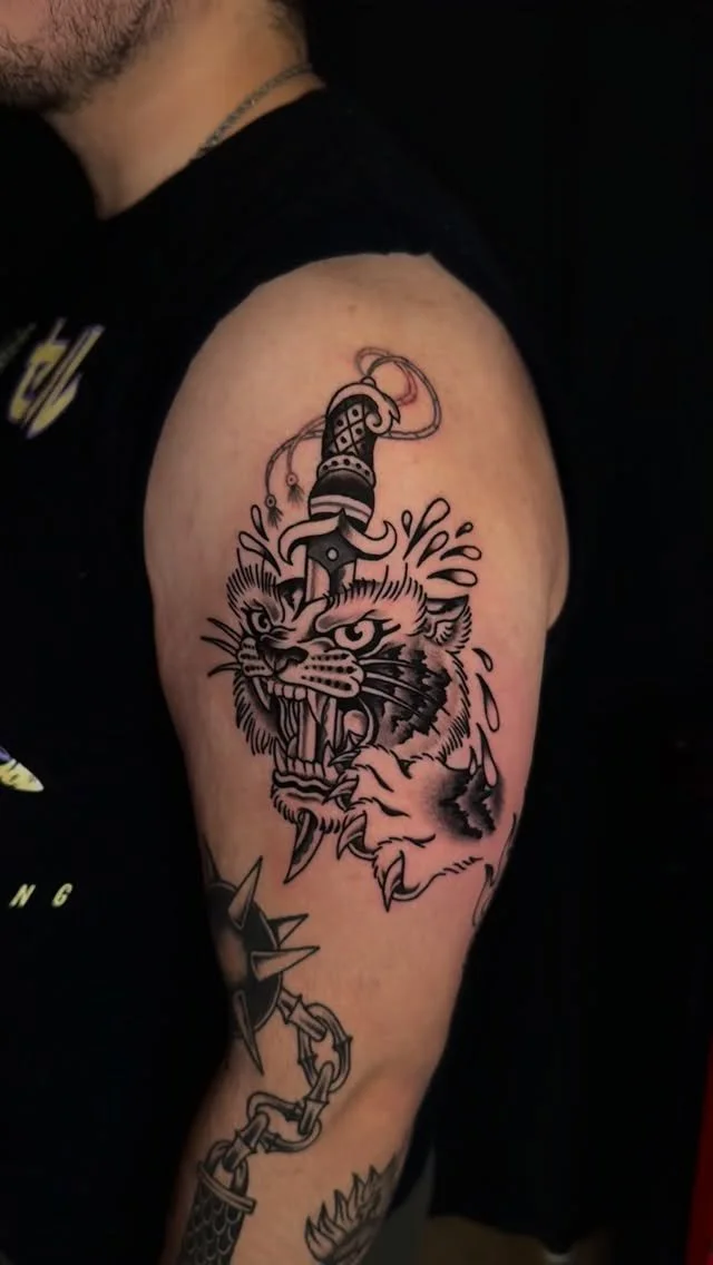Tattooing professionally since 2021, I (Aid Bus Tattoos) bring a deep-rooted passion for ink that started long before stepping into a shop. After first tattooing myself at just 14, I spent years immersed in the craft, driven by a love for every style—but especially drawn to the bold lines, timeless imagery, and lasting impact of American traditional. Whether it’s a classic eagle, dagger, or rose, I approach each piece with precision, respect for the roots, and a genuine appreciation for tattooing as both art and tradition.